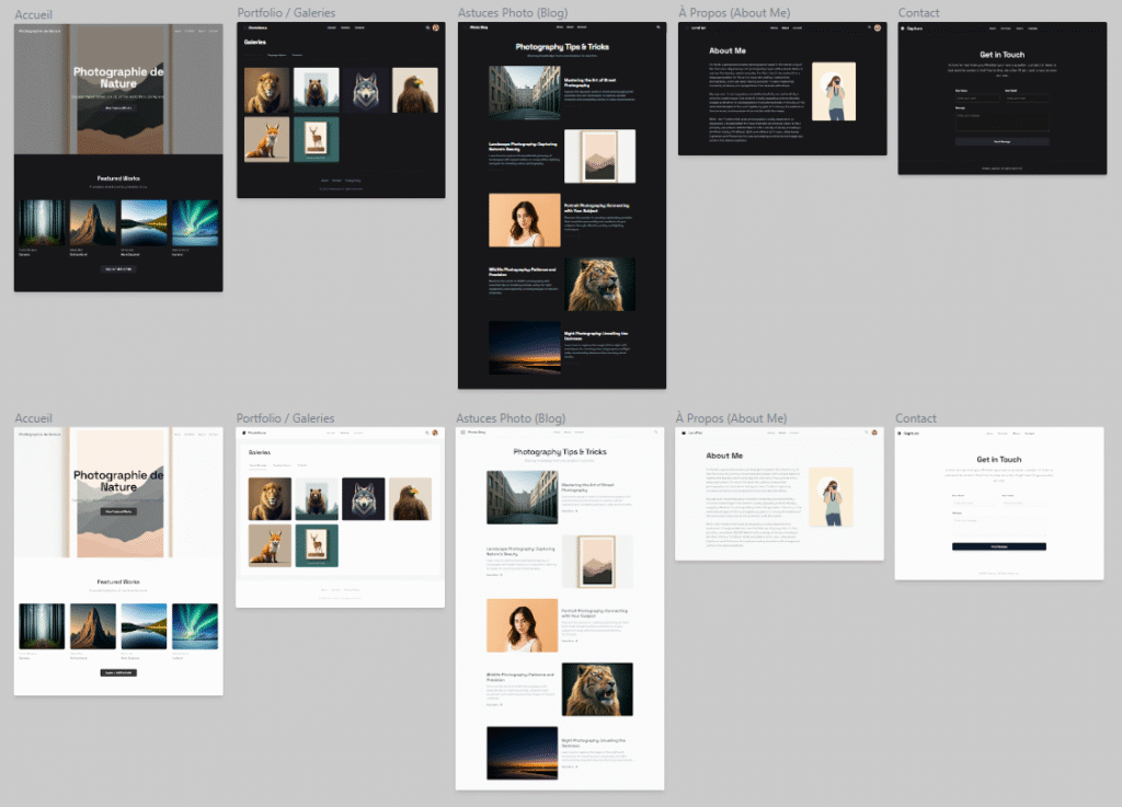 Je ne suis pas designer dans l’âme. Aussi j’ai un peu triché en m’aidant de Stitch de Google. Stitch permet de concevoir des maquettes à l’aide de l’IA. Avec quelques prompt bien optimisé, je suis arrivé à un résultat qui me satisfait pleinement. Ensuite je les exporte dans Figma qu’on ne présente plus pour apporter les dernières modifications.